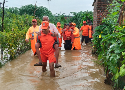 बाजपुर(उद संवाददाता)। बाजपुर क्षेत्र में लेवड़ा नदी का जल स्तर बढ़ने से कई बस्तियों में बाढ़ की स्थिति उत्पन्न हो गयी है। बाढ़ के कारण कई लोगों को घर छोड़ने के लिए मजबूर होना पड़ा है। बुधवार को एनडीआरएफ की टीम द्वारा कई बस्तियों में रेस्क्यू अभियान चलाकर लोगों को सुरक्षित स्थानों पर पहुंचाया गया।