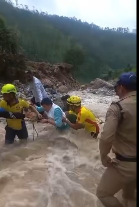 बागेश्वर/कपकोट । पौंसारी गांव के खाई जर तोक में आई आपदा के बाद स्थानीय विधायक सुरेश गढ़िया और जिलाधिकारी आशीष भटगाई भी पौंसारी गांव के लिए रवाना हुए। सड़क मार्ग टूटने से डीएम और विधायक कई किलोमीटर संकरे और अस्थाई जानलेवा मार्गो से जैसे तैसे आपदा ग्रस्त गांव पहुंचे।इसी बीच उफनते तेज नाले के बहाव को पार करने में विधायक सुरेश गढ़िया को जान जोखिम में डालकर एनडीआरएफ की टीम ने उफनते नाले से पार करवाया।पर उनके गनर का नाले के तेज बहाव में संतुलन बिगड़ने से वे भी कुछ दूरी तक बहते चले गए।उन्हें बचाने के लिए स्थानीय लोग और एसडीआरफ के जवानों ने कड़ी मस्ककत कर उनके गनर को बचाया।जिससे बड़ा हादसा होते होते बचा।वही तेज बरसाती नाले में उबड़ खाबड़ टूटे हुए रास्तों से गांव तक पहुंचने में डीएम और अन्य अधिकारियों को भी काफी परेशानी हुई।डीएम भी लगभग12किमी पैदल दूरी तय कर गांव तक पहुँचे।कई स्थानों में कीचड़, तेज उफनते नाले को पार करने हेतु जान जोखिम में डालकर डीएम आशीष भटगाई भी कठिन मार्गो को पार करते हुए पौनसारी गांव पहुँचे।जहां उन्होंने आपदा ग्रस्त क्षेत्र का जायजा अधिकारियों को त्वरित आपदा नियंत्रण की कार्रवाई करने के निर्देश दिए।डीएम और विधायक को अपने बीच देखकर लोगों और राहत कार्यों में लगे अधिकारियों और जवानों का मनोबल बढ़ा।वे लगातार अपने स्तर से उचित सहयोग करते नजर आए। कपकोट क्षेत्र के ग्राम पौंसारी के खाई जर तोक में गुरुवार देर रात बादल फटने की घटना से भारी क्षति हुई है।बादल फटने से घरों में मलबा घुस गया, जिसके कारण दो परिवार प्रभावित हुए हैं।प्रभावित परिवारों में दो लोगों की मौत जबकि तीन लोग लापता हुए हैं।जिनकी खोजबीन जारी है।मृत लोगों में अब तक जिनके शव बरामद हुए हैं उनमें बसंती देवी,बचुली देवी,जबकि लापता हुए लोगों में रमेश चंद्र जोशी (लापता), और उनका बेटा गिरीश,औऱ पूरन जोशी का अभी तक पता नही चल पाया है। हादसे में बेटा पवन सुरक्षित है