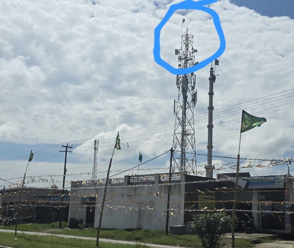 मोबाइल टावरों पर लहरा दिए इस्लामिक झंडे,प्रशासन रहा खामोश
