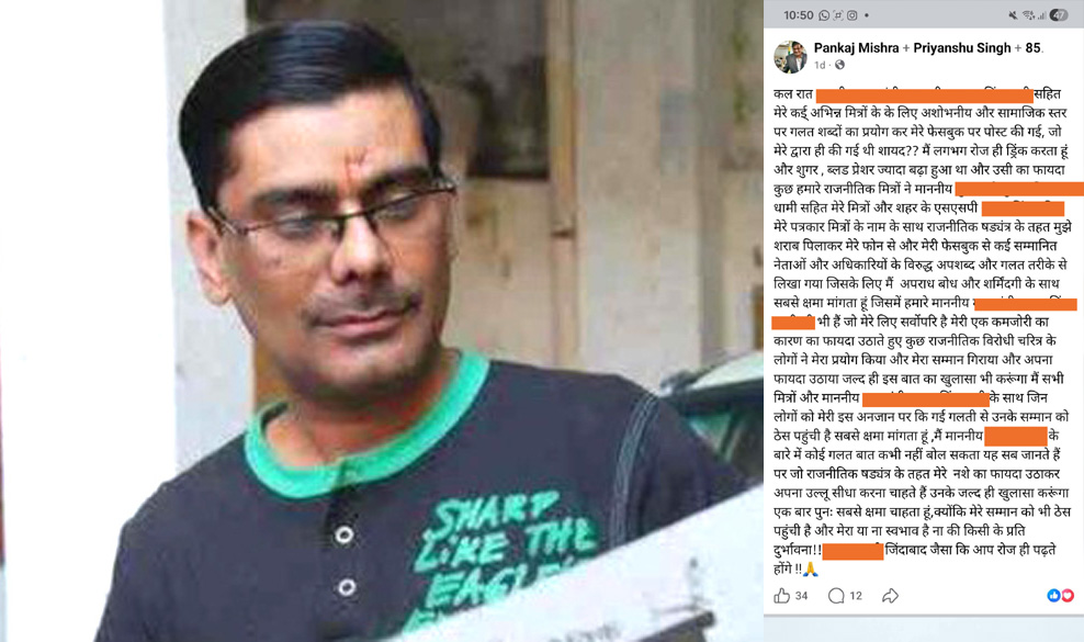 फेसबुक पोस्ट का मामला सुर्खियों में छाया : पंकज मिश्रा की संदिग्ध मौत के बाद पत्रकार अमित सहगल पर मुकदमा दर्ज