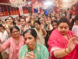 रूद्रपुर । चैत्र मास के पावन नवरात्र पर्व के छठे दिवस पर श्री लक्ष्मी नारायण मंदिर में श्री सनातन धर्म सभा एवं श्री सनातन युवा मंच द्वारा संयुक्त रूप से आयोजित माता की चौकी में मंगलवार की रात्रि भजन गायक कलाकारों ने माता के भजन सुनाकर उपस्थित सभी भक्तों को भक्ति में सराबोर कर दिया। सर्वप्रथम जजमान बब्बर परिवार ने पंडित सालिगराम पाण्डेय व नन्दकिशोर जोशी की अगुवाई में माता की विधि विधान से पूजा अर्चना की। जिसके पश्चात माता की चौकी का शुभारम्भ किया गया। भजन गायक अमित अरोरा ने गुरू वन्दना, गणेश वन्दना, देवी देवताओं का आव्हान व फूलों की वर्षा के भजन सुनाये। जिसके बाद स्थानीय भजन गायक रितेश मनोचा ने हवांवा आईयां ने अज मेरी दाती ने आना है, असां पलकां बिछाईयां ने, तेरे आवन दी मां मैनूं खुशबू आ रही है, लक्खां देके भुल जांदिए, मेरी मां नूं गिनती नहीं आंवदी, आये आये मेरी दाती दे नवरात्रे सभी ने खुशियां मनाईयां,तेरा रंग चढ़या दातिए, सबनूं आसरा तेरा, दे दे मेरी दातिए मंदिर दा कोना, जब भी जी चाहे देख लवां मैं मां तेरा रूप सलोना, तूं देंदी जा माये अस्सी मंगदे रहणा, तेरे रंगा विच मैं रंग जावां जमाने कोलों की लेणा, जिस हाल विच रखंे उस हाल में रह जाणा आदि भजन सुनाये। जिन्हें सुनकर सभी श्रद्धालु तालियां बजाते हुए मां की भक्ति में मग्न होकर नाचते रहे। अंत में आरती के बाद प्रसाद वितरित किया गया। इस दौरान मेयर विकास शर्मा, जसविन्दर सिंह खरबंदा, महेश बब्बर, ओम प्रकाश अरोरा, विजय जग्गा, अश्वनी बजाज, गौरव बेहड़, अमित अरोरा, मनोज मुंजाल, राकेश सुखीजा, राकेश राजदेव, विजय विरमानी, पवन गाबा, राजेश छावड़ा, सचिन मुंजाल, सुरेन्द्र रज्जी, मोहन भुड्डी, राजेन्द्र खनीजो, नरेश छावड़ा, साक्षी सुखीजा, किरन जग्गा, शशि अरोरा, सोनिया अरोरा, बीना बेहड़, पूर्वी बेहड़, सोनिया सुखीजा, आशा गाबा, मानूषी गाबा, संजय जुनेजा, राजकुमार सीकरी, राजकुमार भुसरी, हरीश ईश्पुजानी, अजय बंसल, श्वेता गाबा, विजय जुनेजा, कमल फुटेला, रोहित गोयल, साक्षी गोयल, मोहित बत्रा, साक्षी ग्रोवर, सुरेश जग्गा, रोहित जग्गा, गौरव जग्गा, गुरदीप सिंह गाबा, जतिन सुखीजा, सुमित बब्बर, सचिन तनेजा, गौरव तनेजा, पंकज सुखीजा, बिट्टू ग्रोवर, विजय चिलाना, राजकुमार खनीजो, मनोज अरोरा, सुधीर अरोरा, पंकज बांगा, जुगनूं, सचिन अग्रवाल, महेश अग्रवाल, अदिति अग्रवाल, आस्था अग्रवाल, प्रियंका अग्रवाल, मानवी अग्रवाल, सतपाल गाबा, राजेश अरोरा, पुष्पा ग्रोवर, आनन्द, रिंकू ग्रोवर, संजय ठुकराल, गुरकीरत सिंह गाबा, राजन राठौर, रमेश राठौर, विपिन लूथरा, नरेन्द्र अरोरा, साक्षी अरोरा, नीलम ग्रोवर, हरीश गुम्बर, अमित बांगा, स्नेहा मिड्डा, डा. नारायण अदलखा, नरेश शर्मा, गुलशन नारंग, आदि मौजूद थे।