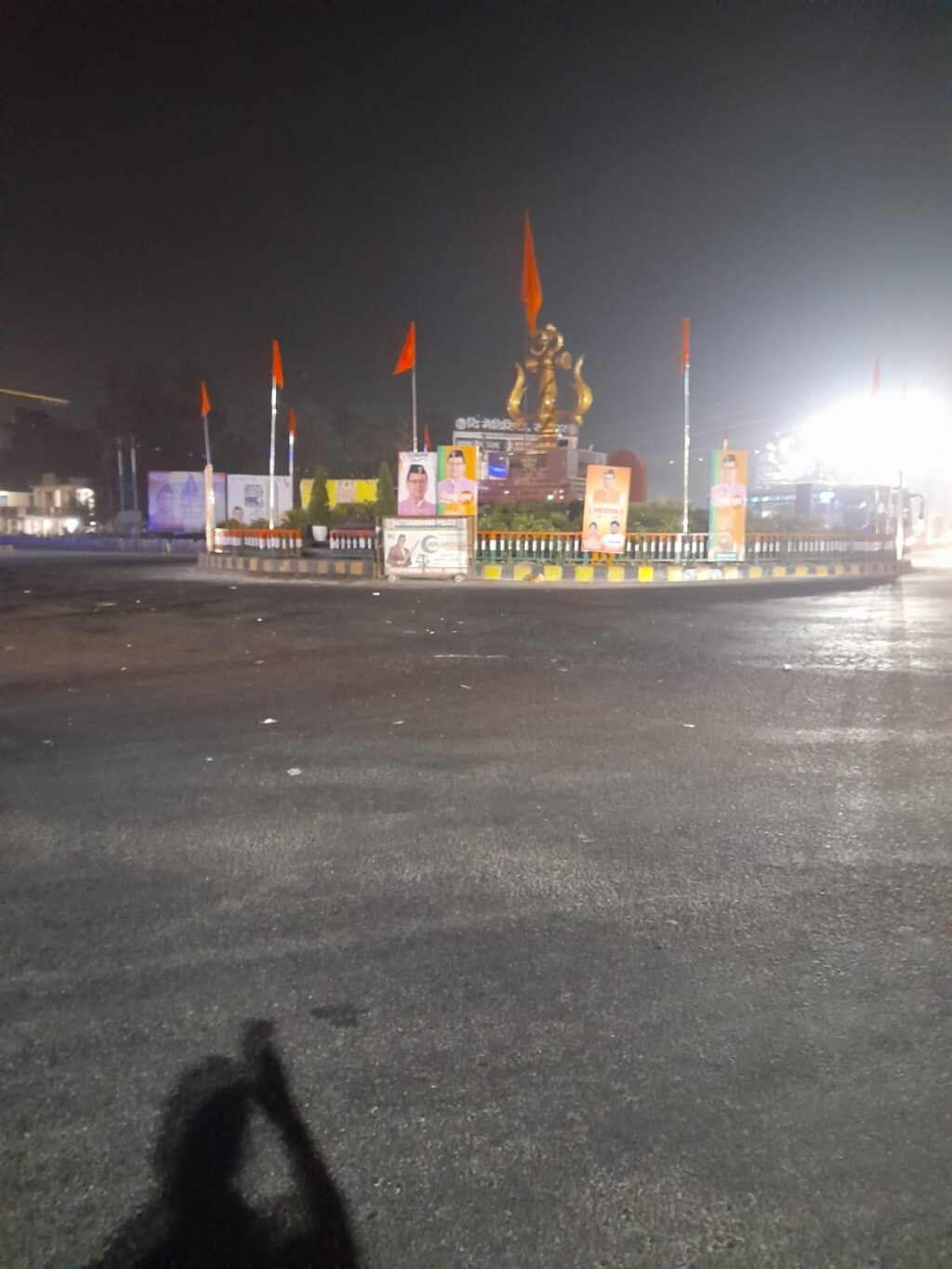 उद्घाटन के दो दिन बाद ही अंधेरे में डूबा त्रिशूल चौक,इंदिरा चौक में स्थापित त्रिशूल के सामने लगाई गई गोल्डन लाइट बंद होने से गायब हुई त्रिशूल की स्वर्णिम आभा
