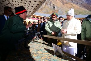 देहरादून । मुख्यमंत्री श्री पुष्कर सिंह धामी रविवार को देश के प्रथम गाँव माणा में आयोजित दो दिवसीय देवभूमि सांस्कृतिक महोत्सव 2025 के समापन समारोह में पहुँचे। इस आयोजन में स्थानीय समुदायों, पर्यटकों और गणमान्य अतिथियों की उत्साहपूर्ण सहभागिता देखने को मिली। महोत्सव का संचालन भारतीय सेना एवं उत्तराखंड सरकार के संयुक्त तत्वावधान में किया गया। मुख्यमंत्री ने महोत्सव की सराहना करते हुए कहा कि स्थानीय जनता, सेना और प्रशासन के सुचारू समन्वय से यह आयोजन बेहद सफल रहा, जिसने सीमांत क्षेत्रों में पर्यटन और आर्थिकी को बढ़ावा देने की दिशा में अहम कदम बढ़ाया है।मुख्यमंत्री ने जिला प्रशासन व सेना द्वारा लगाए गए स्टालों एवं फ्नो योर आर्मीय् प्रदर्शनी का अवलोकन किया। उन्होंने कहा कि यह प्रदर्शनी भारतीय सेना और आम जनता के बीच विश्वास और सहयोग को और मजबूत करेगी। आर्मी द्वारा प्रदर्शित उपकरणों, मॉडल्स और सूचना सामग्री की उन्होंने विशेष सराहना की।महोत्सव में स्कूली बच्चों ने पारंपरिक लोकनृत्य और गीतों की शानदार प्रस्तुति दी। मुख्यमंत्री ने उत्कृष्ट प्रदर्शन करने वाले बच्चों को पुरस्कार वितरित किए और कहा कि गढ़वाली लोक संस्कृति की ये झलकियाँ देवभूमि के असली गौरव को दर्शाती हैं। गढ़वाली बैंड, स्थानीय कलाकारों व कारीगरों के प्रदर्शन ने भी सभी का मन मोह लिया।स्थानीय शिल्पकारों और स्वयं सहायता समूहों द्वारा लगाए गए स्टॉलों में पारंपरिक बुनाई, लकड़ी के हस्तशिल्प, जैविक उत्पाद, स्थानीय व्यंजन और अन्य धरोहर सामग्री को पर्यटकों द्वारा खूब सराहा गया। मुख्यमंत्री ने कहा कि यह पहल वाइब्रेंट विलेज कार्यक्रम के उद्देश्यों को मजबूती प्रदान करते हुए युवाओं और महिलाओं को आजीविका के नए अवसर उपलब्ध करवाती है।मुख्यमंत्री ने कहा कि यह महोत्सव केवल मनोरंजन का माध्यम नहीं बल्कि सर्दियों के मौसम में पर्यटन विकास, रोजगार सृजन, रिवर्स पलायन को बढ़ावा और सीमांत क्षेत्रों की अर्थव्यवस्था को सशक्त करने में सहायक सिद्ध होगा।कार्यक्रम के अंत में मुख्यमंत्री ने श्री बद्रीविशाल के दर्शन कर पूजा अर्चना की और प्रदेश एवं देशवासियों की सुख-समृद्धि की कामना की।इस दौरान जिलाधिकारी श्री गौरव कुमार पुलिस अधीक्षक श्री सर्वेश पंवार, बीकेटीसी के मुख्य कार्यकारी अधिकारी श्री विजय थपलियाल सहित अनेक जनप्रतिनिधि, अधिकारी, सैन्य अधिकारी व स्थानीय नागरिक उपस्थित रहे।