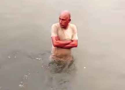 जल सत्याग्रह के लिए रामगंगा में उतरा आंदोलनकारी,पुलिस प्रशासन के हाथ पांव फूले